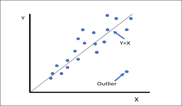 Figure 3: Scattered plot of paired of original and duplicate samples showing outlier. Modified from Babakhani, 2014.
